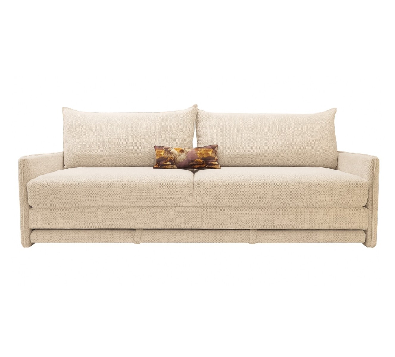 Καναπές κρεβάτι διαχρονικού σχεδιασμού με ύφασμα υψηλής αντοχής. Υπόσχεται ανθεκτικότητα, άνετη καθιστική εμπειρία και εξαιρετική αίσθηση ύπνου. Τα μαξιλάρια πλάτης και καθίσματος είναι αποσπώμενα και πλενόμενα για εύκολο καθάρισμα. Μετατρέπεται εύκολα σε κρεβάτι αυξάνοντας τη λειτουργικότητα του δωματίου. Δυνατότητα παραγωγής στις διαστάσεις και τα χρώματα της επιλογής σας.